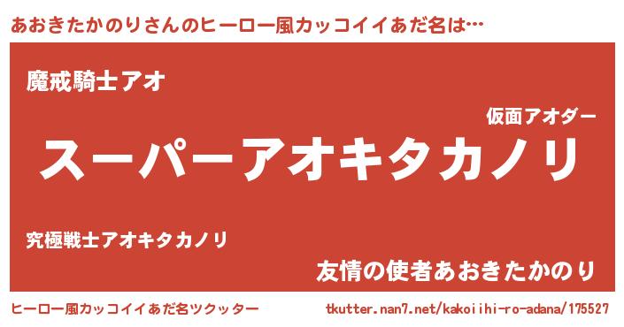 | 男性向けラノベタイトル風あだ名 | 『アオキタカノリアートオンライン』 |