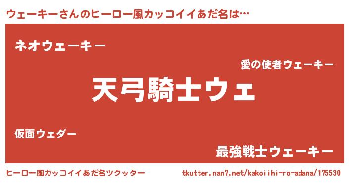 | 男性向けラノベタイトル風あだ名 | 『ウェーキーの嫁は女の子じゃないと思った?』 |