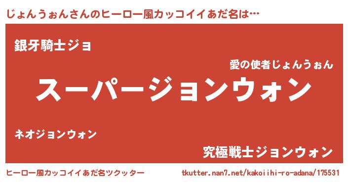 | 胡散臭い通販商品みたいなあだ名 | 『億万長者になれるブレスレット…その名も「じょんうぉん」』 |