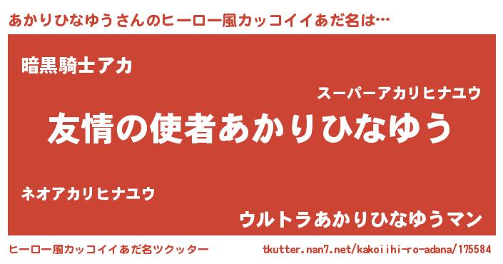 | 男性向けラノベタイトル風あだ名 | 『おまえをオタクにしてやるから、俺をあかりひなゆうにしてくれ! 』 |