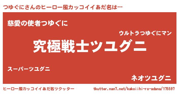 | 男性向けラノベタイトル風あだ名 | 『Re:つゆぐにから始める異世界生活』 |