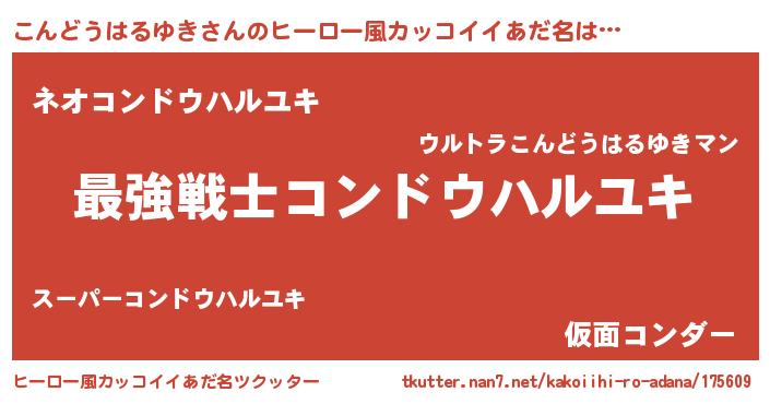 | 男性向けラノベタイトル風あだ名 | 『Re:こんどうはるゆきから始める異世界生活』 |