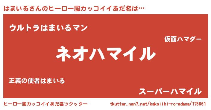| 胡散臭い通販商品みたいなあだ名 | 『絶対に幸福をもたらす水素水…その名も「はまいる」』 |