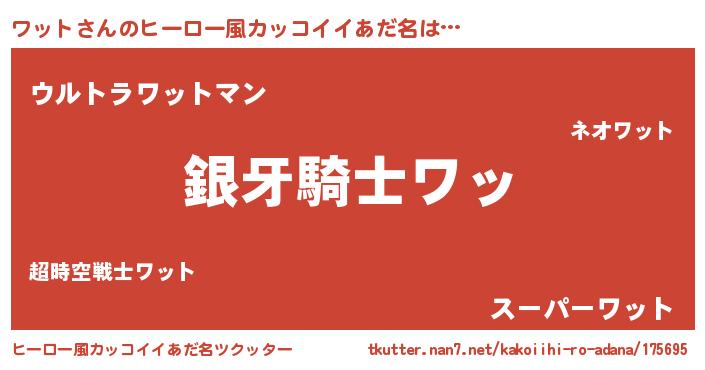 | 意味不明あだ名 | 『とにかく怪しいワット』『自称ワット』 |