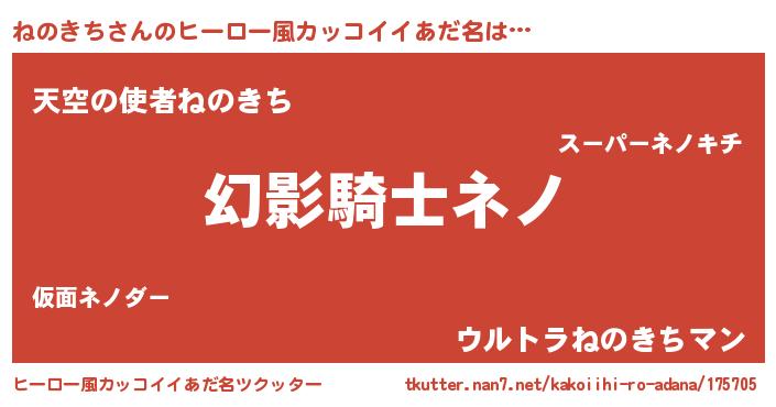 | 男性向けラノベタイトル風あだ名 | 『ねのきちの嫁は女の子じゃないと思った?』 |