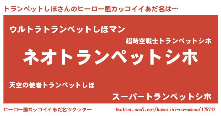 | 胡散臭い通販商品みたいなあだ名 | 『来世でも幸せになれる水素水…その名も「トランペットしほ」』 |