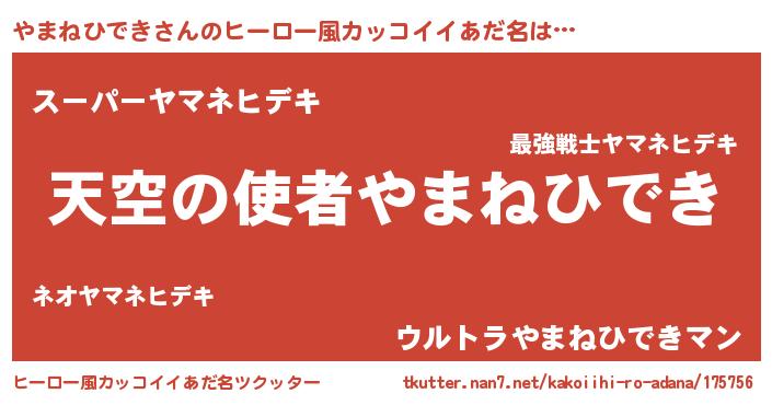 | 男性向けラノベタイトル風あだ名 | 『ノーゲーム・ノーヤマネヒデキ』 |