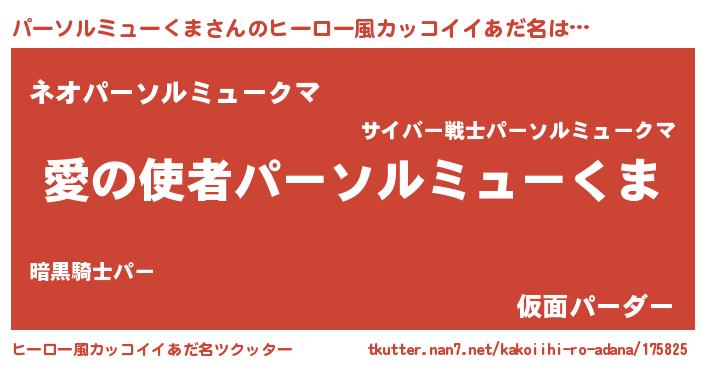 | 女子向けラノベタイトル風あだ名 | 『パーソルミューくま恋絵巻』 |