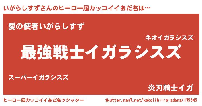 | 男性向けラノベタイトル風あだ名 | 『いがらしすず~年齢イコール彼女いない歴の魔法使い~』 |