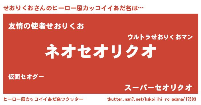| ヘコむあだ名 | 『せおりくお(笑)』『せおにー』 |