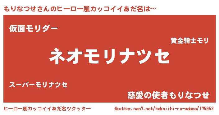 | 男性向けラノベタイトル風あだ名 | 『もりなつせという概念が存在しない退屈な世界 』 |