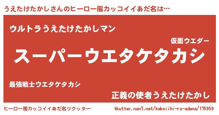 | 男性向けラノベタイトル風あだ名 | 『うえたけたかしの憂鬱』 |
