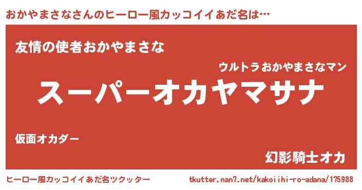 | 胡散臭い通販商品みたいなあだ名 | 『必ず成功する霊験あらたかなお札…その名も「おかやまさな」』 |