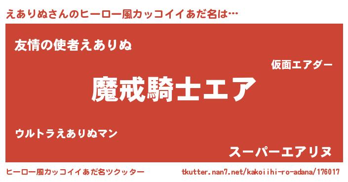 | 女子向けラノベタイトル風あだ名 | 『えありぬの卵を拾いまして』 |