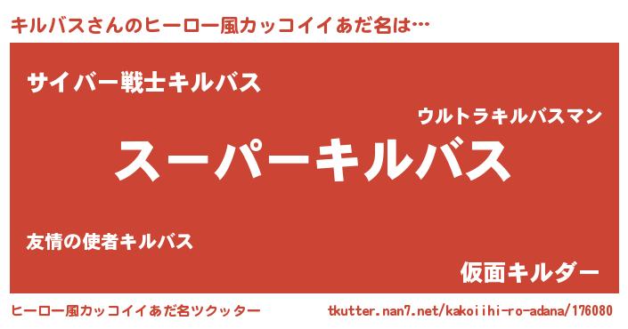 | 意味不明あだ名 | 『なめこ科キルバス属』『自称キルバス』 |