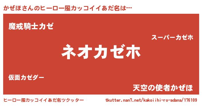 | 欧米人風あだ名 | 『ダルビッシュかぜほ』『ウサインかぜほ』 |
