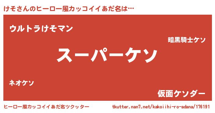 | 男性向けラノベタイトル風あだ名 | 『はたらくけそさま!』『ケソスレイヤー』 |