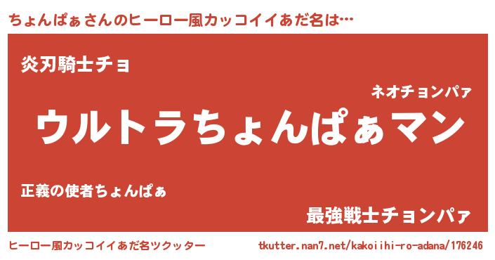 | 男性向けラノベタイトル風あだ名 | 『やはりちょんぱぁの青春ラブコメはまちがっている 』 |