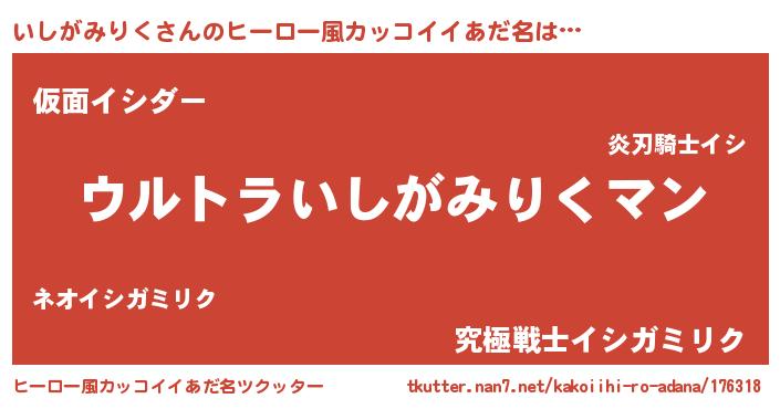 | 欧米人風あだ名 | 『いしがみりくクリステル』 |