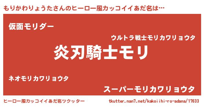 | 男性向けラノベタイトル風あだ名 | 『もりかわりょうたの嫁は女の子じゃないと思った?』 |
