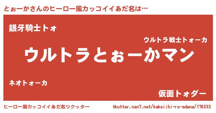 | 意味不明あだ名 | 『とぉーかフォーエバー』『自称とぉーか』 |