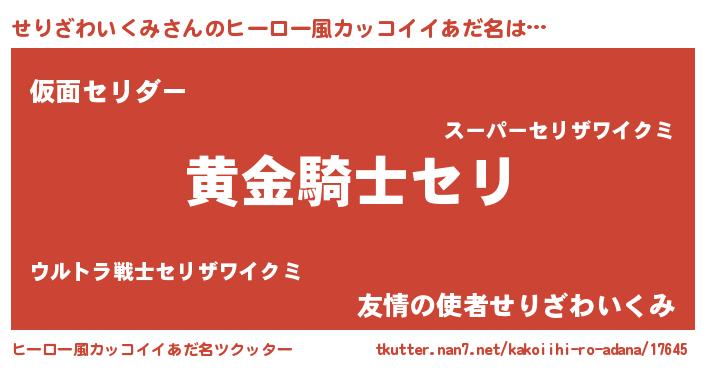 | ポケモン風あだ名 | 『セリゴンZ』『ヒセリザワイクミ』 |
