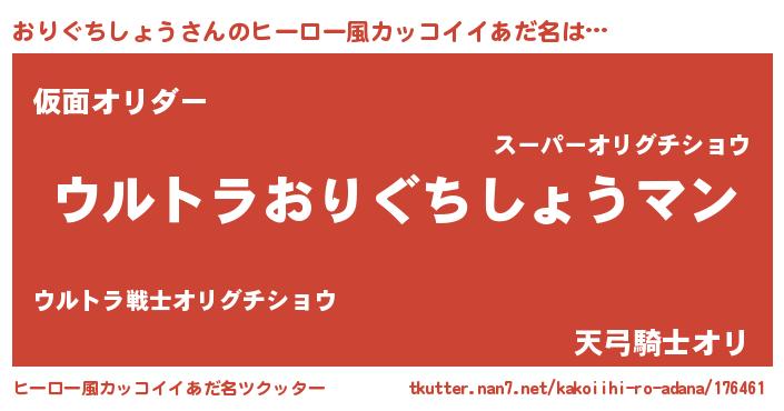 | 男性向けラノベタイトル風あだ名 | 『やはりおりぐちしょうの青春ラブコメはまちがっている 』 |