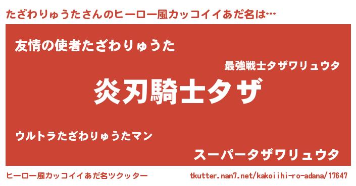 | 男性向けラノベタイトル風あだ名 | 『たざわりゅうたの嫁は女の子じゃないと思った?』 |