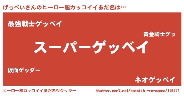 | 男性向けラノベタイトル風あだ名 | 『げっべいの憂鬱』 |