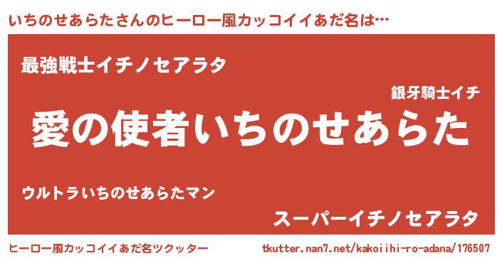 | 女子向けラノベタイトル風あだ名 | 『いちのせあらた恋絵巻』 |