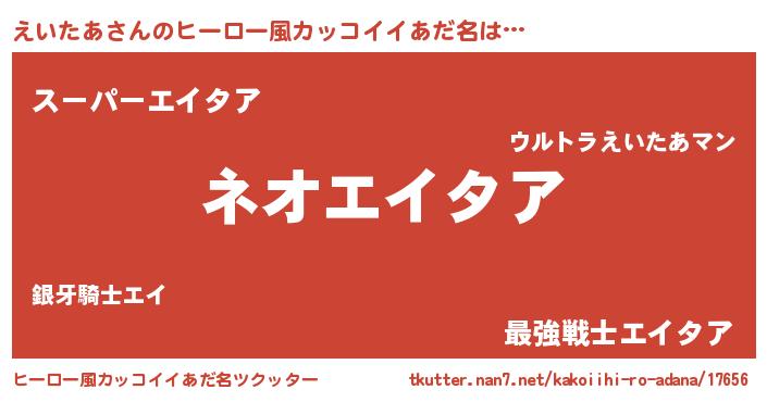 | 男性向けラノベタイトル風あだ名 | 『えいたあに滅ぼされるだけの簡単なお仕事です』 |