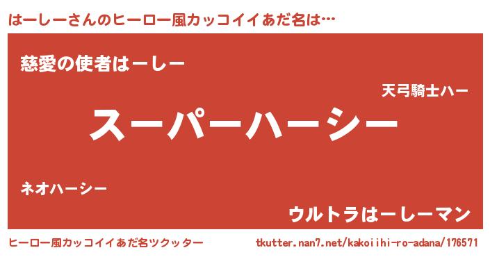 | 男性向けラノベタイトル風あだ名 | 『はーしーに滅ぼされるだけの簡単なお仕事です』 |