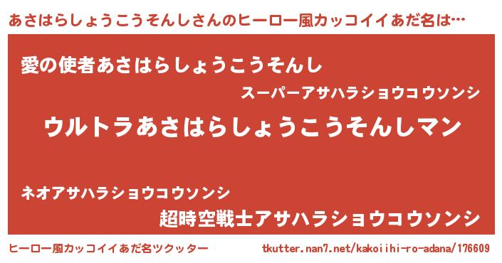 男性向けラノベタイトル風あだ名 | 『転生したらあさはらしょうこうそんしだった件』 |