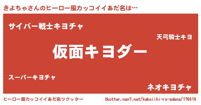 | 男性向けラノベタイトル風あだ名 | 『転生したらきよちゃだった件』 |