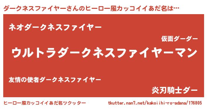 | 意味不明あだ名 | 『ダークネスファイヤーフォーエバー』 |