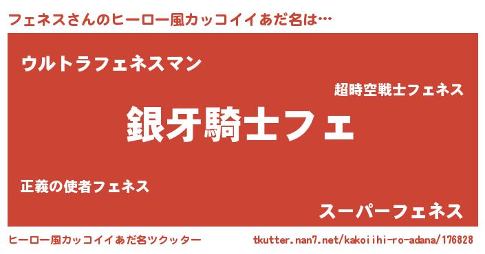| 男性向けラノベタイトル風あだ名 | 『フェネスの嫁は女の子じゃないと思った?』 |