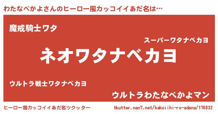 | ポケモン風あだ名 | 『ゼニワタ』『ヒワタナベカヨ』 |