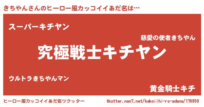 | 男性向けラノベタイトル風あだ名 | 『Re:きちやんから始める異世界生活』 |