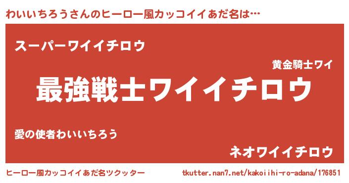 | 男性向けラノベタイトル風あだ名 | 『わいいちろう~年齢イコール彼女いない歴の魔法使い~』 |