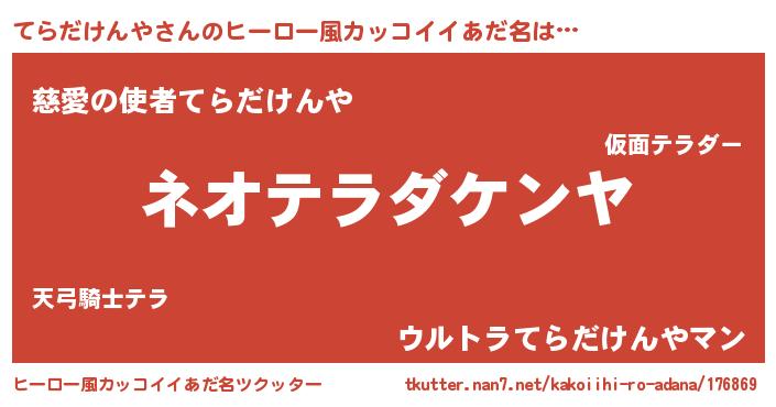 | 胡散臭い通販商品みたいなあだ名 | 『絶対に幸福をもたらす水素水…その名も「てらだけんや」』 |