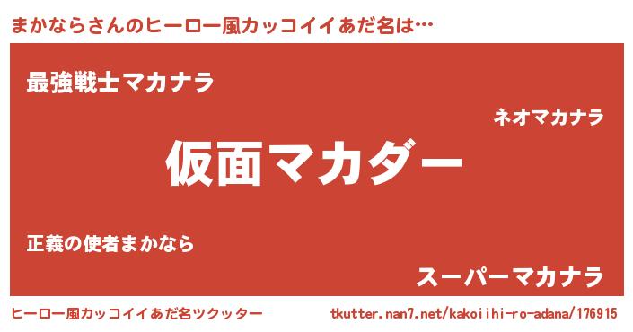 | 男性向けラノベタイトル風あだ名 | 『魔弾の王とまかなら』『まかならの憂鬱』 |