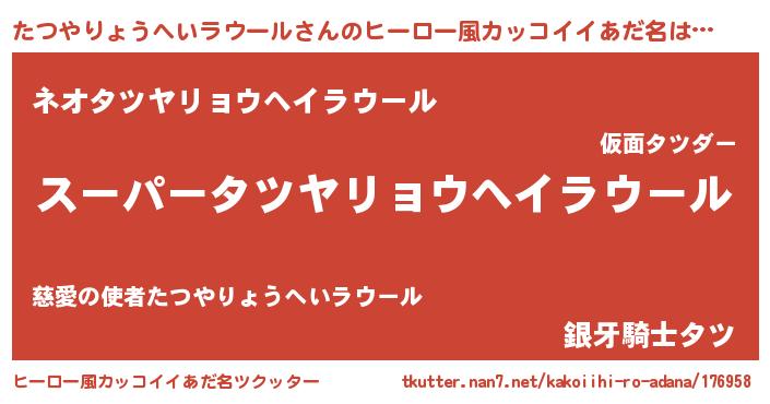 | 男性向けラノベタイトル風あだ名 | 『たつやりょうへいラウールの憂鬱』 |