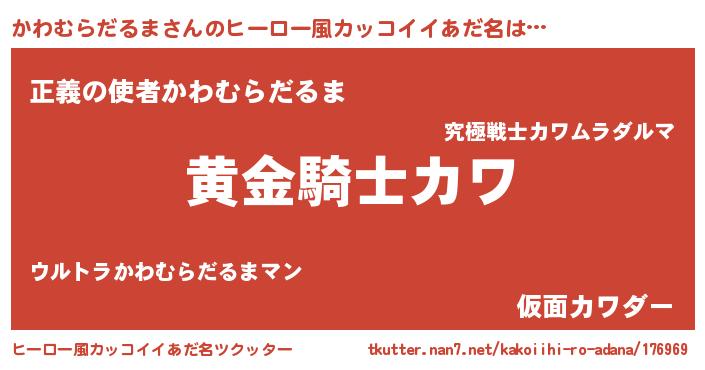 | ポケモン風あだ名 | 『カワキング』『ヒカワムラダルマ』 |