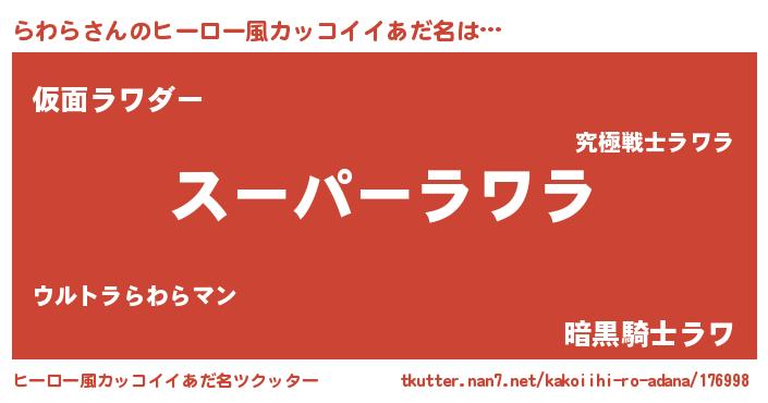 | 男性向けラノベタイトル風あだ名 | 『らわらの憂鬱』『魔弾の王とらわら』 |
