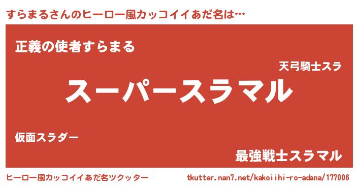 | 男性向けラノベタイトル風あだ名 | 『すらまるに滅ぼされるだけの簡単なお仕事です』 |