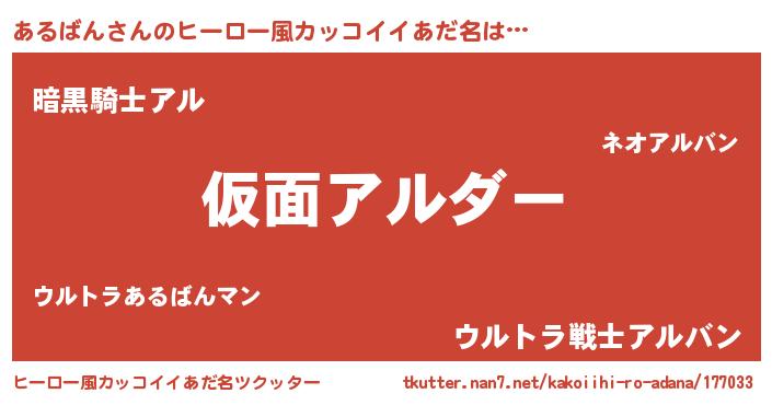 | 男性向けラノベタイトル風あだ名 | 『緋弾のアルバン』『アルバンスレイヤー』 |