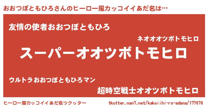 | 男性向けラノベタイトル風あだ名 | 『おおつぼともひろの憂鬱』 |