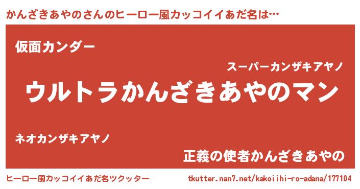 | 男性向けラノベタイトル風あだ名 | 『かんざきあやの~年齢イコール彼女いない歴の魔法使い~』 |