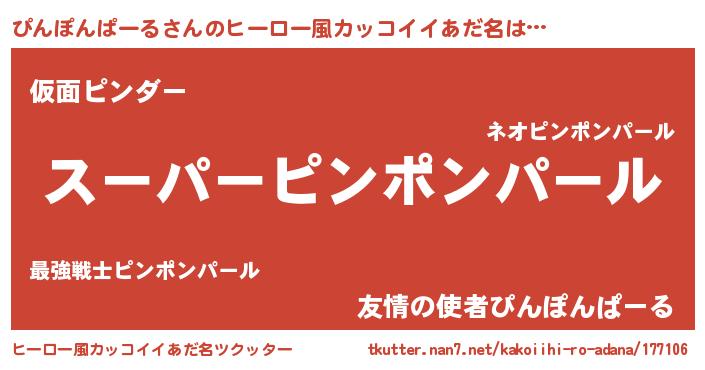 | 伝説のあだ名 | 『伝説のスナイパーぴんぽんぱーる』 |