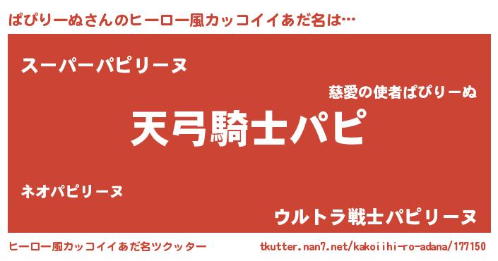 | 男性向けラノベタイトル風あだ名 | 『ぱぴりーぬの嫁は女の子じゃないと思った?』 |